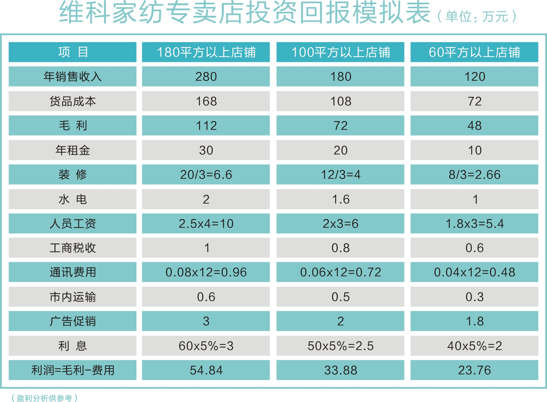 一個專賣店的成功離不開公司的支持,“維科家紡”作為行業(yè)領(lǐng)導品牌,擁有一支經(jīng)驗豐富的營銷團隊及品牌推廣團隊, 可為加盟商提供全方位支持,能快速幫助加盟商實現(xiàn)創(chuàng)業(yè)夢想。