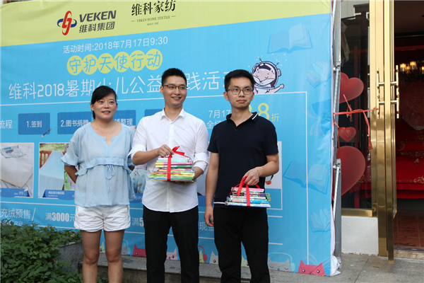 維科家紡視覺形象部經(jīng)理吳世群,代表維科家紡近百位員工,將募集到的40多冊的愛心圖書,捐贈(zèng)給西門街道圖書角,希望能有更多的孩子享受到閱讀的快樂。