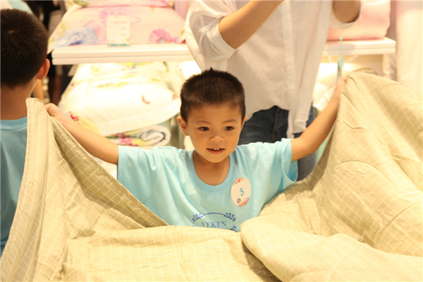 “維科鋪床小達(dá)人”作為此次活動(dòng)的特色項(xiàng)目,利用維科匯門店自身優(yōu)勢,由店員手把手教授小朋友實(shí)用的空調(diào)被折疊技巧,讓孩子們在玩的同時(shí),學(xué)習(xí)到有用的生活技能,在家也能幫父母做一些力所能及的事情。